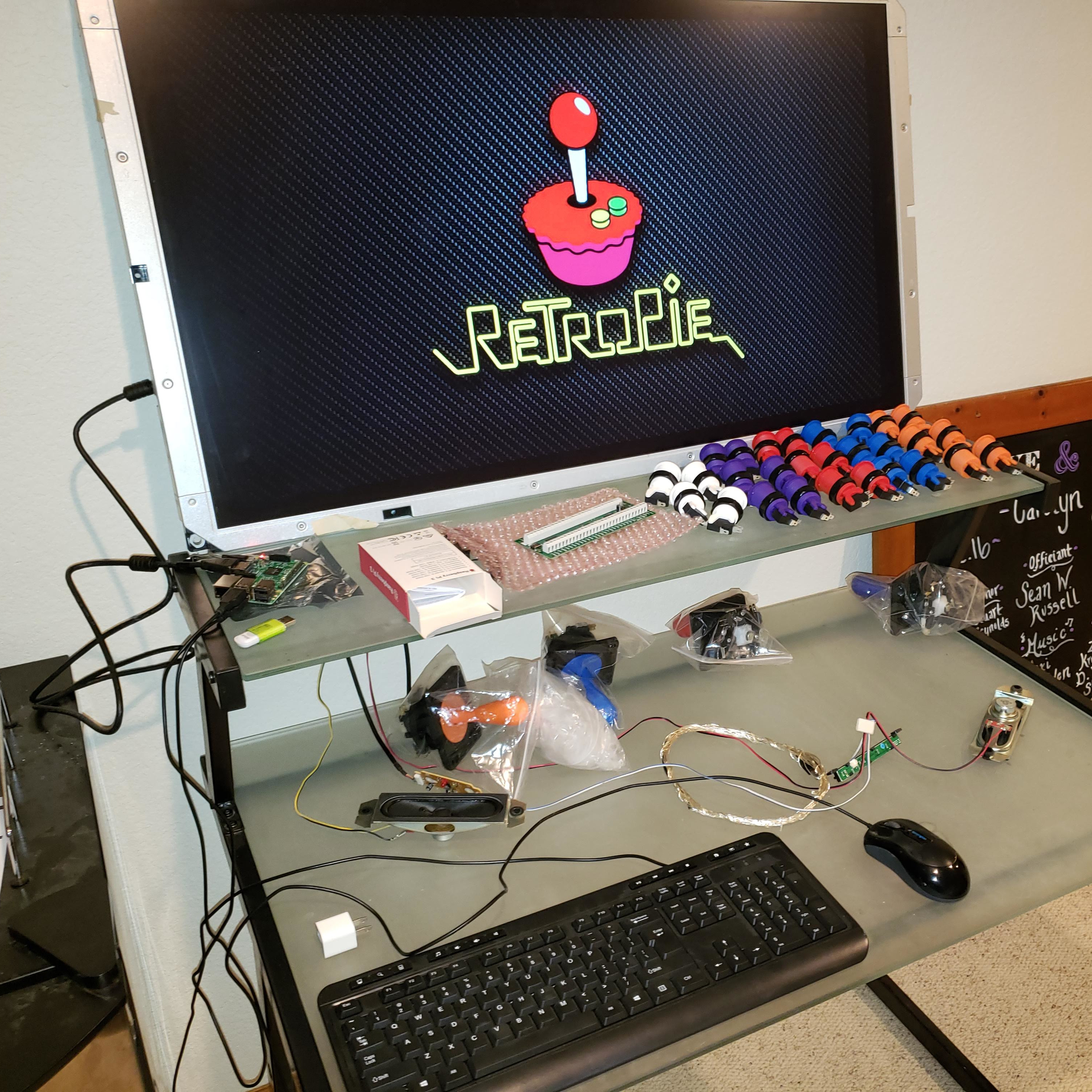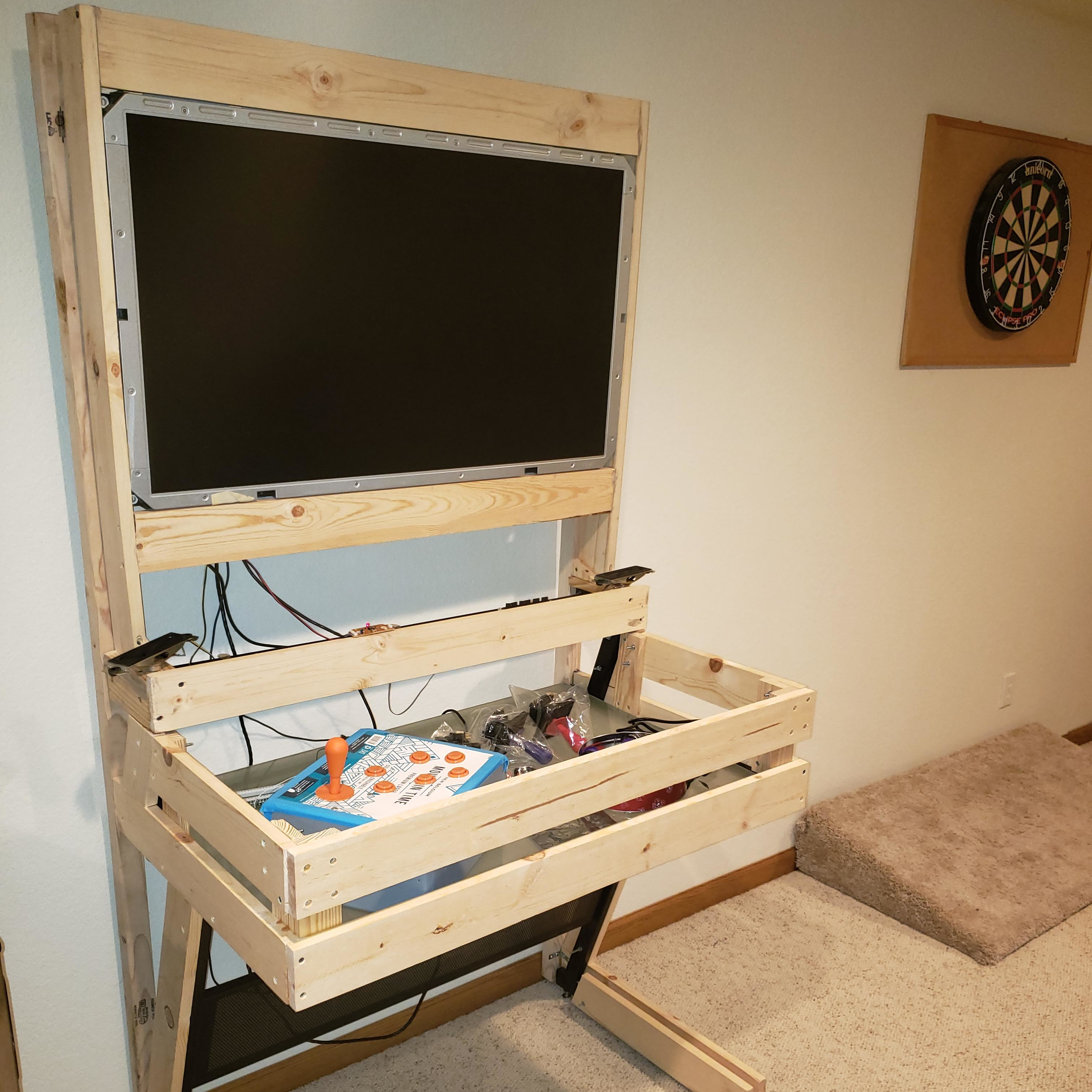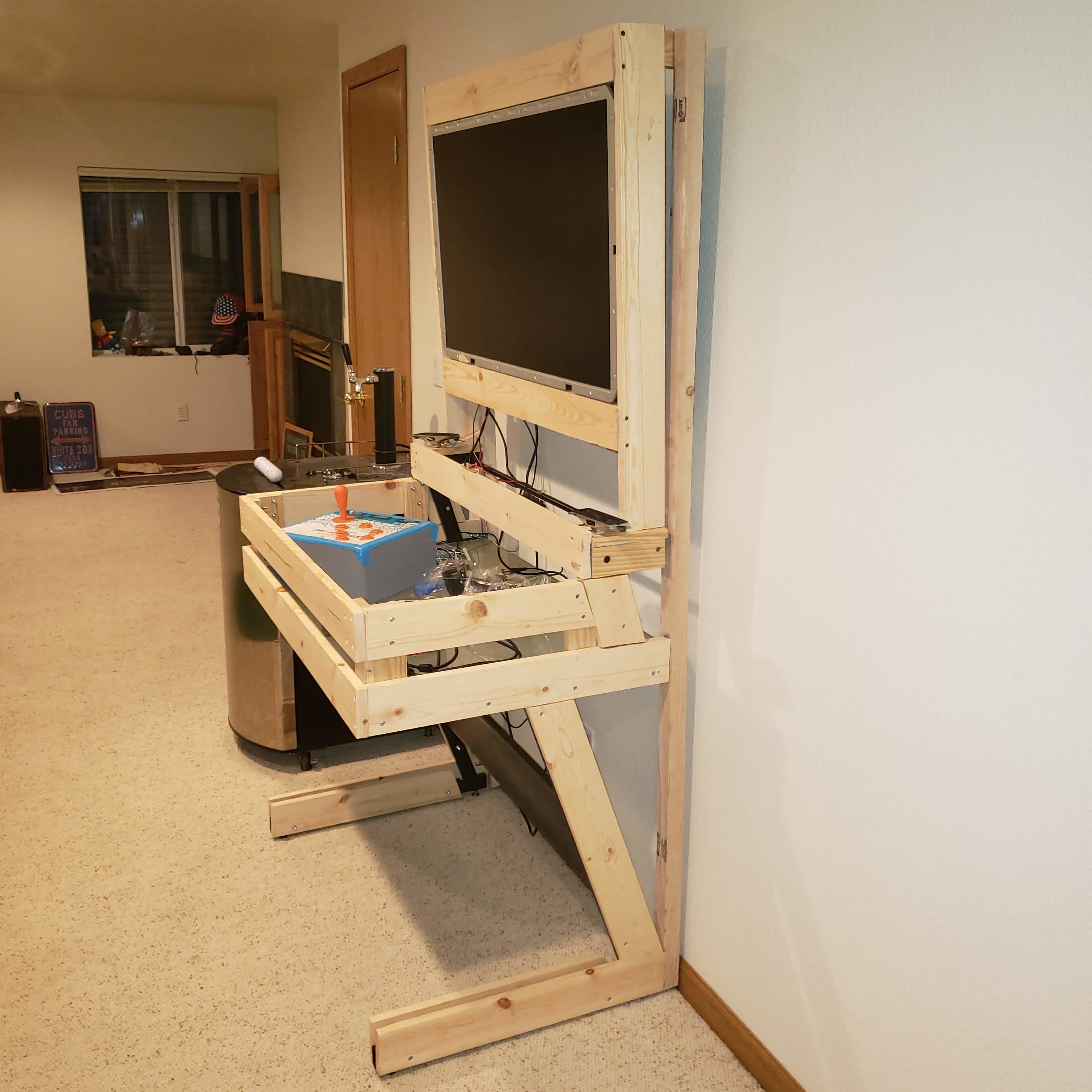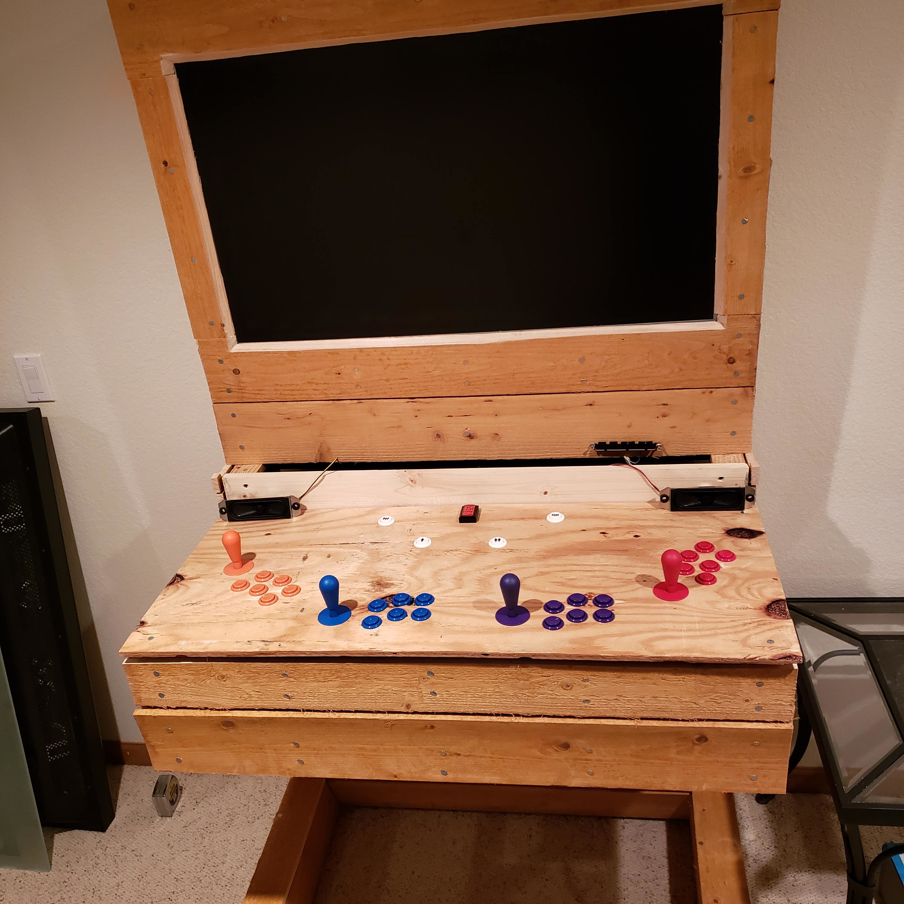 This is always something I wanted to try and do myself, build a full blown arcade. I had an old metal framed desk, a Raspberry Pi, and looking at the two together I decided to give it a shot. I did my research on the different types of operating systems available to run the arcade, the buttons, joysticks, and controllers available to me in order to put everything together. After investigation I decided to go with some typical American style joysticks and buttons that I picked up from Paradise Arcade Shop along with a PCB for connecting it all. I went with the I-PAC 4 interface for the PCB as my favorite arcade games growing up were a lot of 4 players games, The Simpsons, TMNT, and X-Men. Once I got all the pieces I went ahead and did a small scale proof of concept to familiarize myslef with all the componants and to make sure I could get the Raspberry Pi working properly. I went with RetroPie as my operating system for the Pi and it really was quite simple to install and then configure to use with my PCB and add in some games/ROMs to use for testing. I used a wooden box with some carboard on top to test out 1 player and my wife and I were off playing Pac Man! Now that I knew everything worked it just came down to putting everything together. We had an extra TV that I took all the plastic componants off and stripped down to the metal frame. I build a wooden frame around the TV to make it easier to mount to the rest of the structure I was planning on building. For that wooden frame I used some scrap wood I had around the house, and I knew I wanted the Arcade to look rustic, something that would catch your eye at a dive bar with cheap beer. In order to accomplish that I went with cedar fencing to finish the outside. It was the best bang for my buck to skin everything plus it smells nice and was easy to work with. As things got built out I had originally wanted to get a piece of live edge wood to do the top for the buttons. I had some old plywood laying around and decided to use that instead to keep costs down. The live edge wood is something I would still like to add. I used the carboard from the POC build to mark off all the button locations, and drilled out all the required holes. After mounting everything it was time to start wiring it all up. I had some old rolls of ethernet cable, a lot was already seperated. I liked this because I got 8 strands of different color copper to use and there were a lot of strands to run. While I was cabling everything I also used a label maker to add stickers to each wire so that I could reference what went where easily as well. Now that everything was wired up, it was time to wrap up the build. I attached the button top and did a little finish work and we were ready to play. I enjoyed building this way more than I have enjoyed playing it. It's been great at parties when friends come over as 4 people can play some really fun games for free. Overall I'm really happy I finally built this Arcade and that I now have it for years to come. As our kids grow I think it will get used more and more.