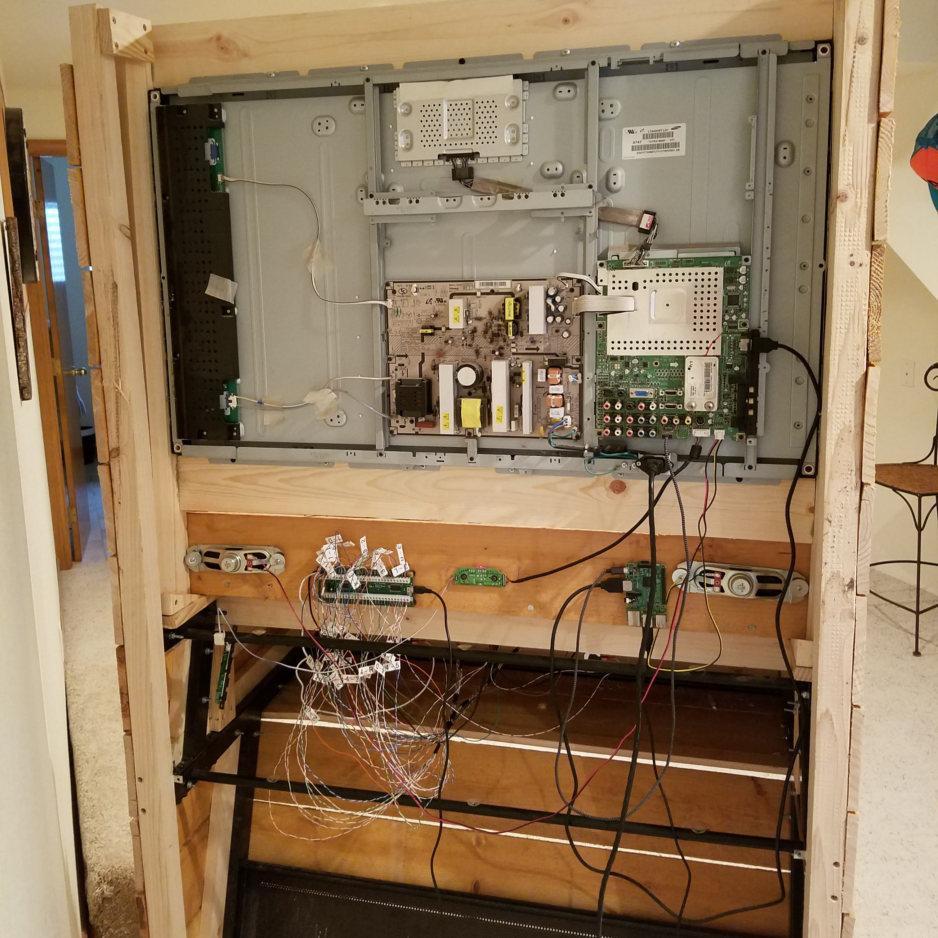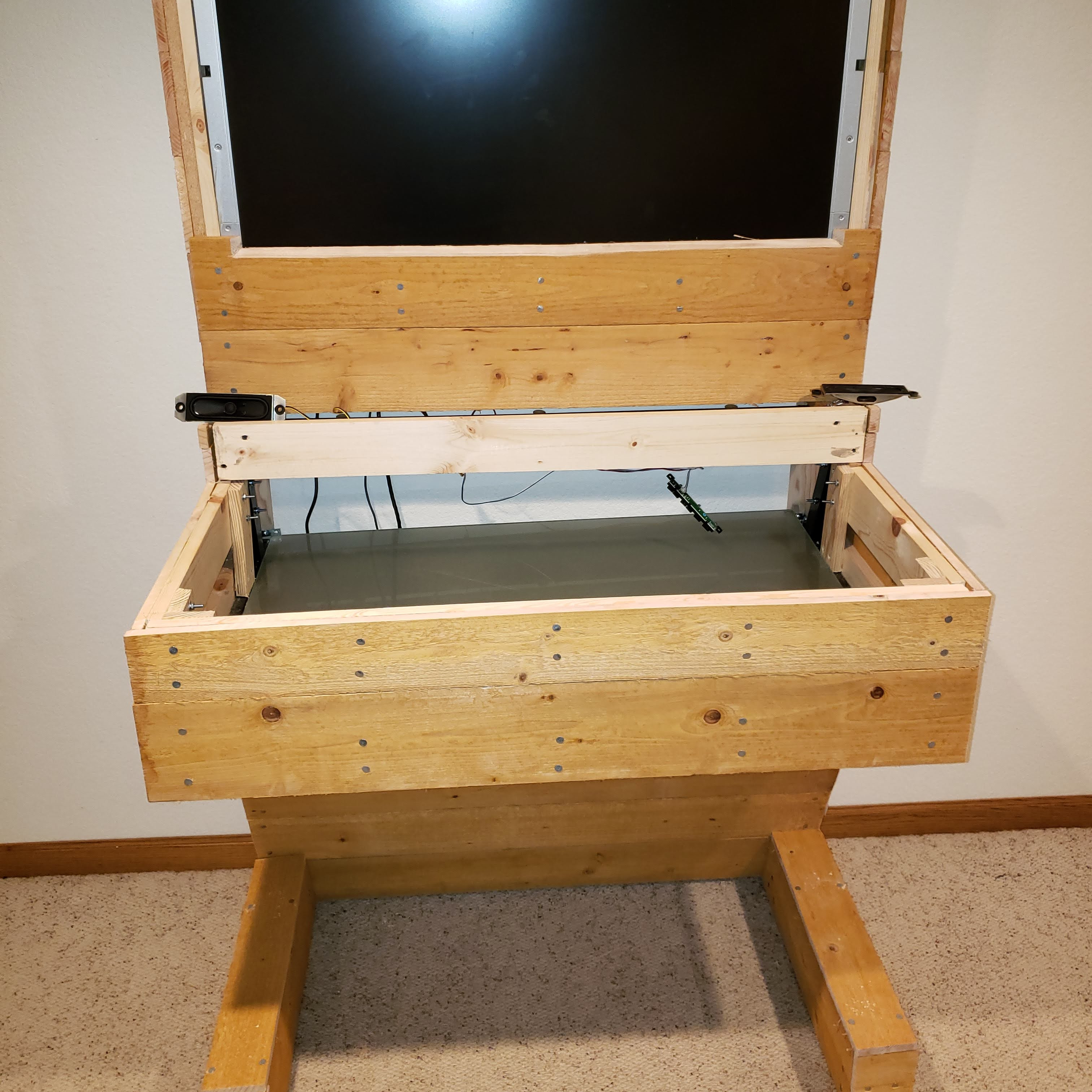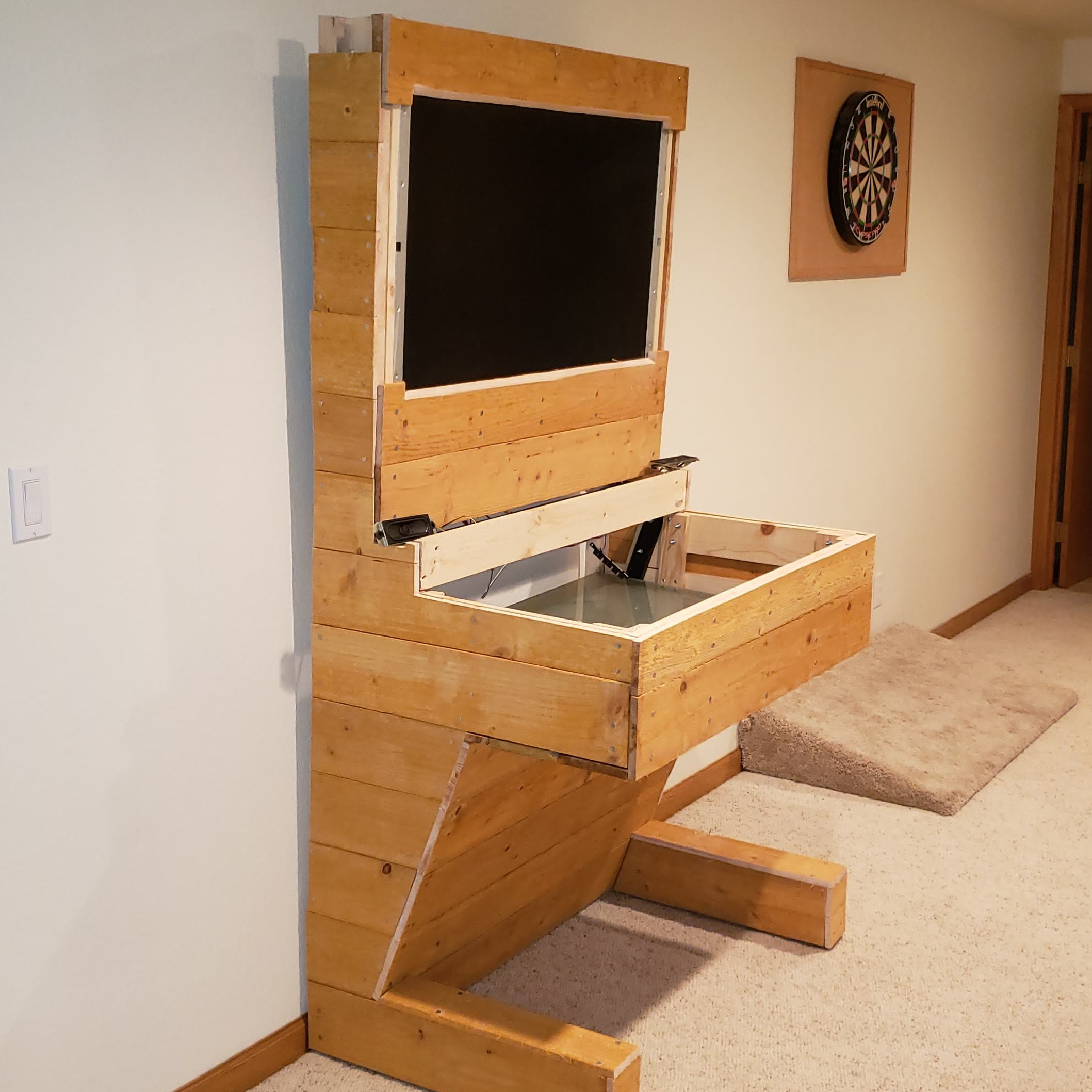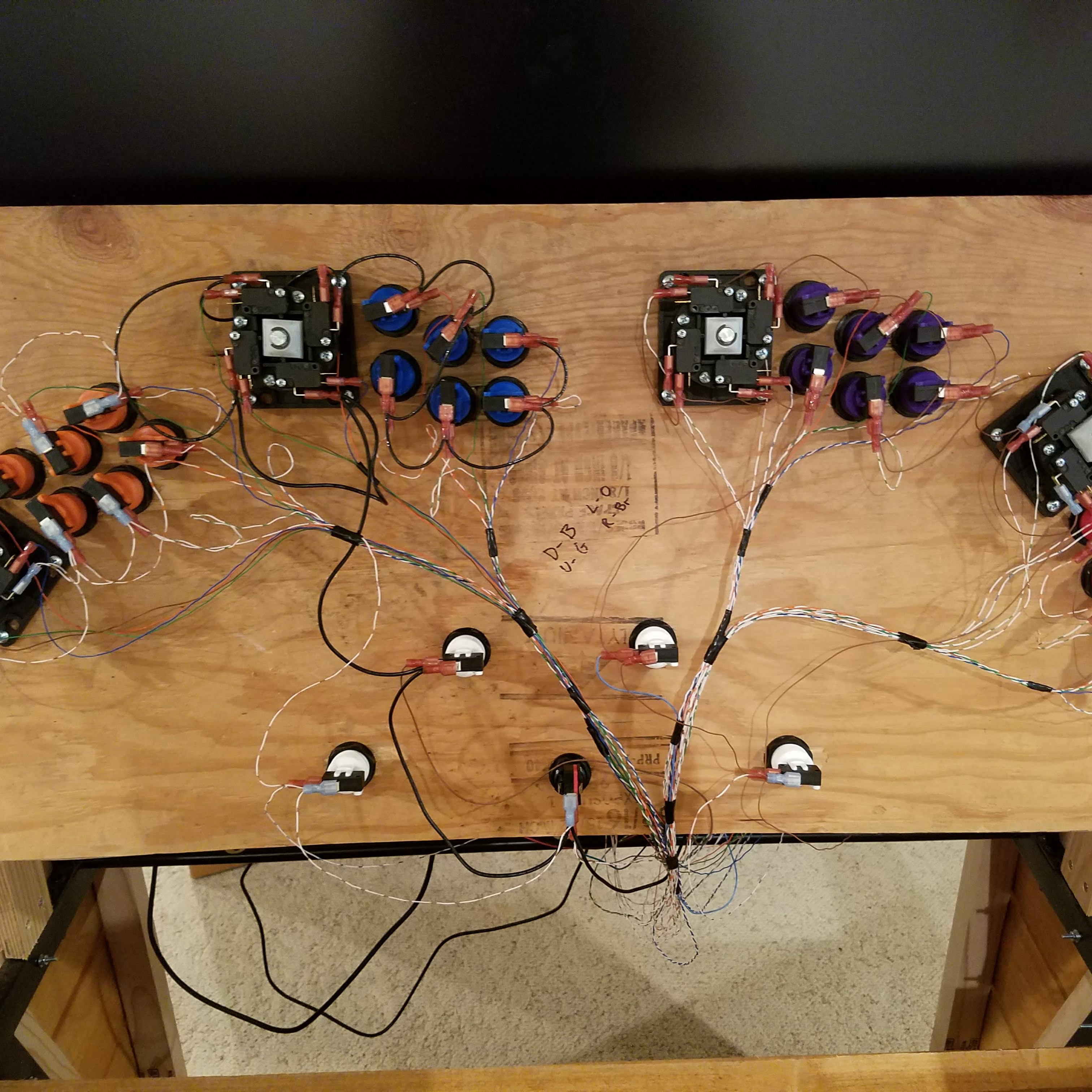 This is always something I wanted to try and do myself, build a full blown arcade. I had an old metal framed desk, a Raspberry Pi, and looking at the two together I decided to give it a shot. I did my research on the different types of operating systems available to run the arcade, the buttons, joysticks, and controllers available to me in order to put everything together. After investigation I decided to go with some typical American style joysticks and buttons that I picked up from Paradise Arcade Shop along with a PCB for connecting it all. I went with the I-PAC 4 interface for the PCB as my favorite arcade games growing up were a lot of 4 players games, The Simpsons, TMNT, and X-Men. Once I got all the pieces I went ahead and did a small scale proof of concept to familiarize myslef with all the componants and to make sure I could get the Raspberry Pi working properly. I went with RetroPie as my operating system for the Pi and it really was quite simple to install and then configure to use with my PCB and add in some games/ROMs to use for testing. I used a wooden box with some carboard on top to test out 1 player and my wife and I were off playing Pac Man! Now that I knew everything worked it just came down to putting everything together. We had an extra TV that I took all the plastic componants off and stripped down to the metal frame. I build a wooden frame around the TV to make it easier to mount to the rest of the structure I was planning on building. For that wooden frame I used some scrap wood I had around the house, and I knew I wanted the Arcade to look rustic, something that would catch your eye at a dive bar with cheap beer. In order to accomplish that I went with cedar fencing to finish the outside. It was the best bang for my buck to skin everything plus it smells nice and was easy to work with. As things got built out I had originally wanted to get a piece of live edge wood to do the top for the buttons. I had some old plywood laying around and decided to use that instead to keep costs down. The live edge wood is something I would still like to add. I used the carboard from the POC build to mark off all the button locations, and drilled out all the required holes. After mounting everything it was time to start wiring it all up. I had some old rolls of ethernet cable, a lot was already seperated. I liked this because I got 8 strands of different color copper to use and there were a lot of strands to run. While I was cabling everything I also used a label maker to add stickers to each wire so that I could reference what went where easily as well. Now that everything was wired up, it was time to wrap up the build. I attached the button top and did a little finish work and we were ready to play. I enjoyed building this way more than I have enjoyed playing it. It's been great at parties when friends come over as 4 people can play some really fun games for free. Overall I'm really happy I finally built this Arcade and that I now have it for years to come. As our kids grow I think it will get used more and more.